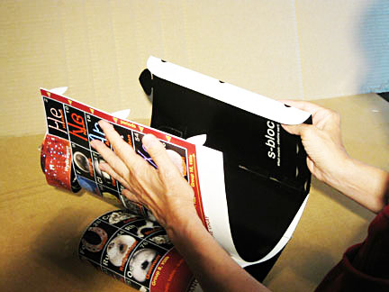 Lay model down with outside corners snug & even and tape (only) the bottom two tabs to the inside, and some of the flap near the bottom.