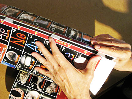 1. Fold up the long vertical joiner three-slot flap at the right side of the s-block and fold down the three tabs at the left of the p-block.