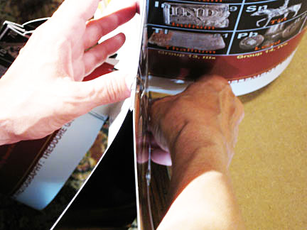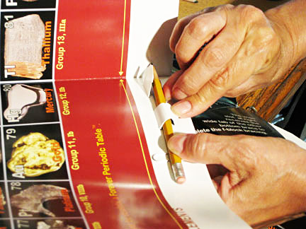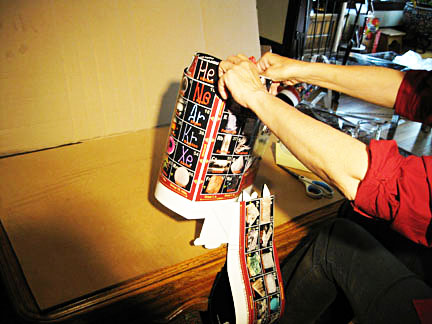 5. Burnish tabs toward bottom hard at the barbs, then curl tabs down around a pencil, tucking them into the slots below - which might require adding tab space inside the white slot strip.